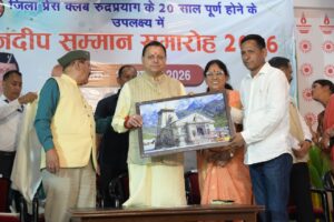 मुख्यमंत्री पुष्कर सिंह धामी अपने एक दिवसीय दौरे पर जनपद रुद्रप्रयाग पहुंचे। इस अवसर पर उन्होंने जिला प्रेस क्लब रुद्रप्रयाग के 20 वर्ष पूर्ण होने के उपलक्ष्य में आयोजित ‘ज्ञानदीप सम्मान समारोह 2026’ में प्रतिभाग किया।